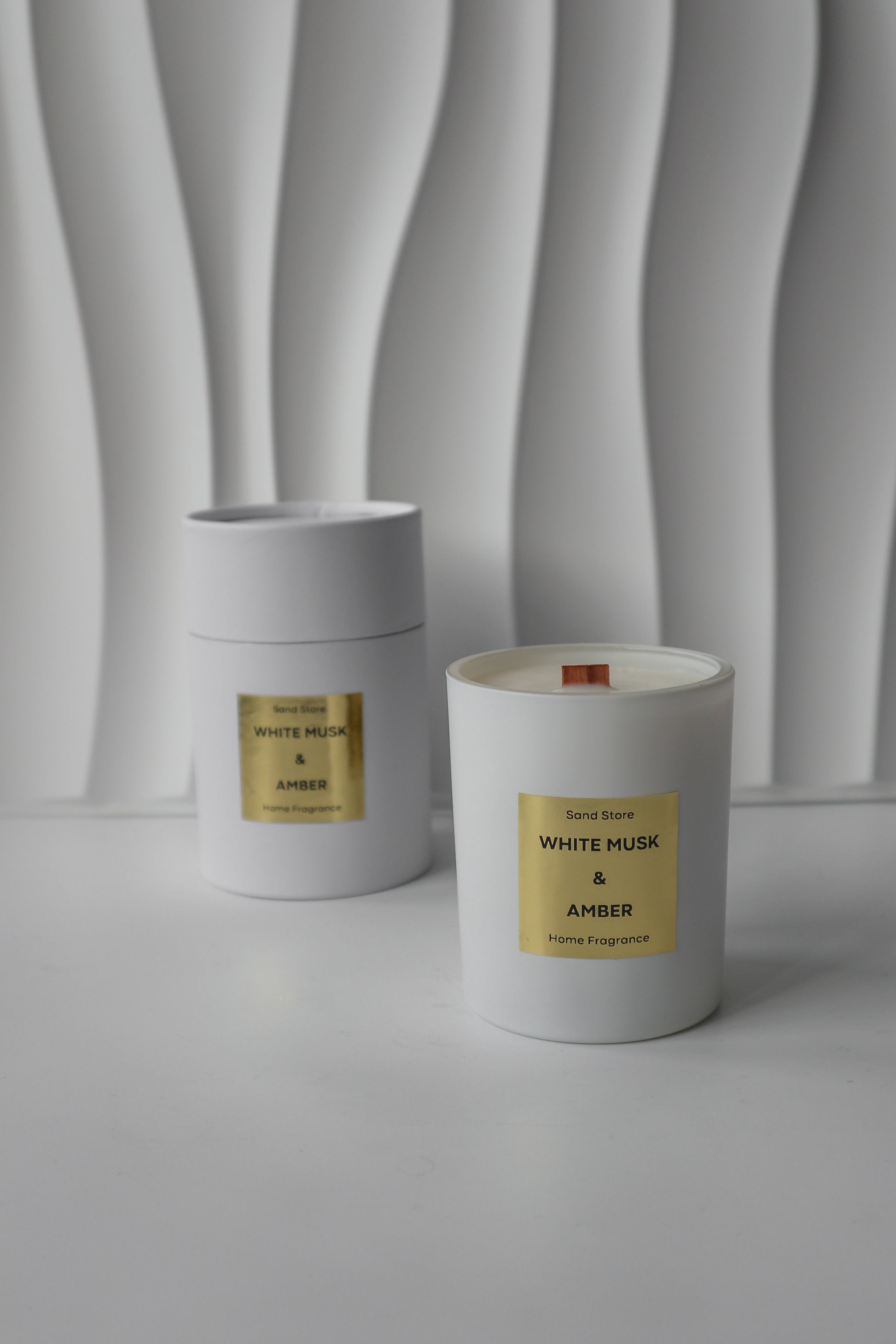 The candles are made of soy wax, free from palm oils and parabens in minimalistic white glass jar, scented with high quality fragrance oil. Comes with branded cardboard tube box & tissue paper. Perfect gift idea.