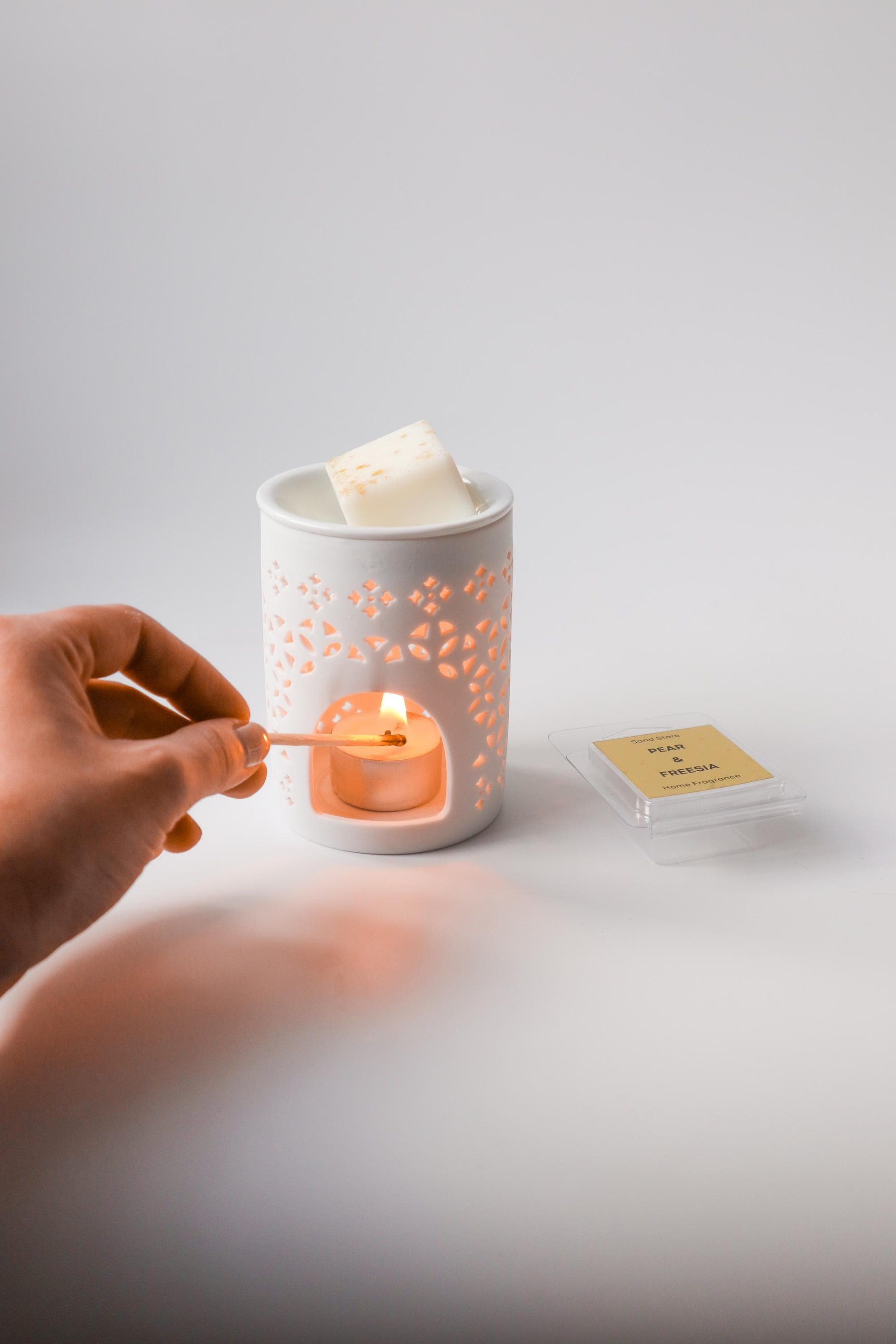 How to use - Simply add one cube at a time to the top of your wax melt burner or electric burner to melt (do not add water) If using a traditional burner light a tea light candle in the base of the melt warmer and allow the wax to melt and the fragrance to fill the room